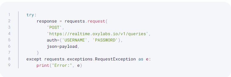 To handle these, you can use try-except blocks in your code. For example, if an error occurs when sending the API request, you can catch the exception and print an error message: